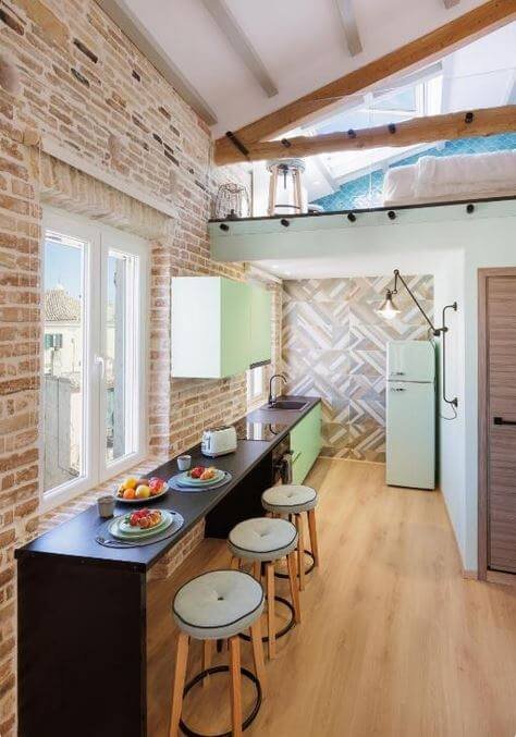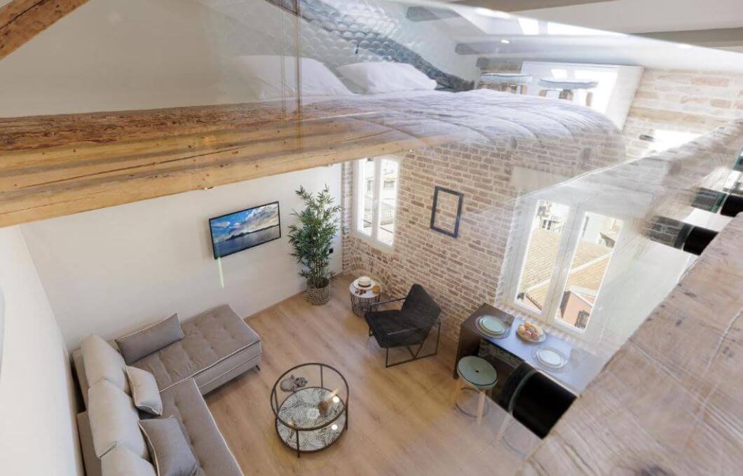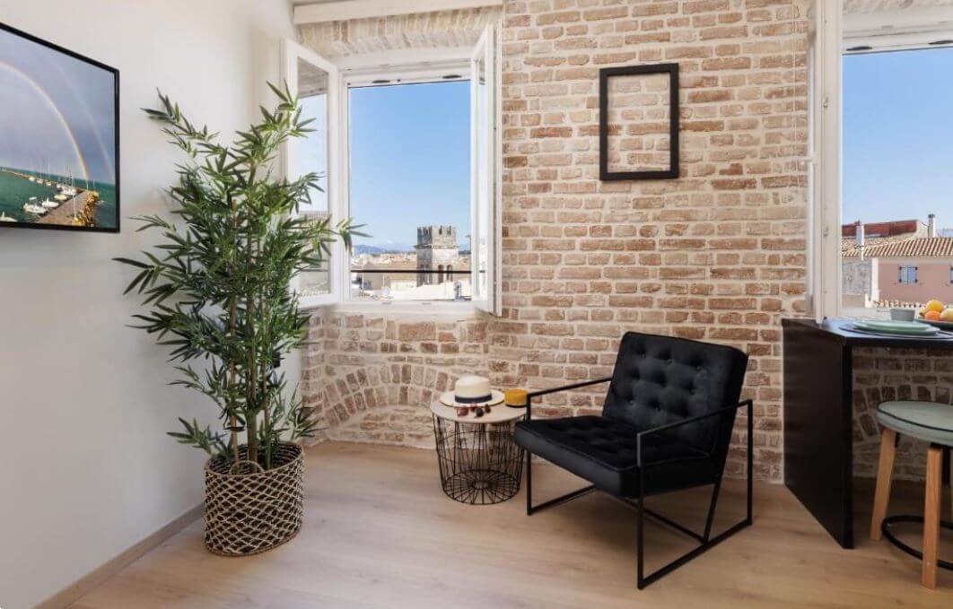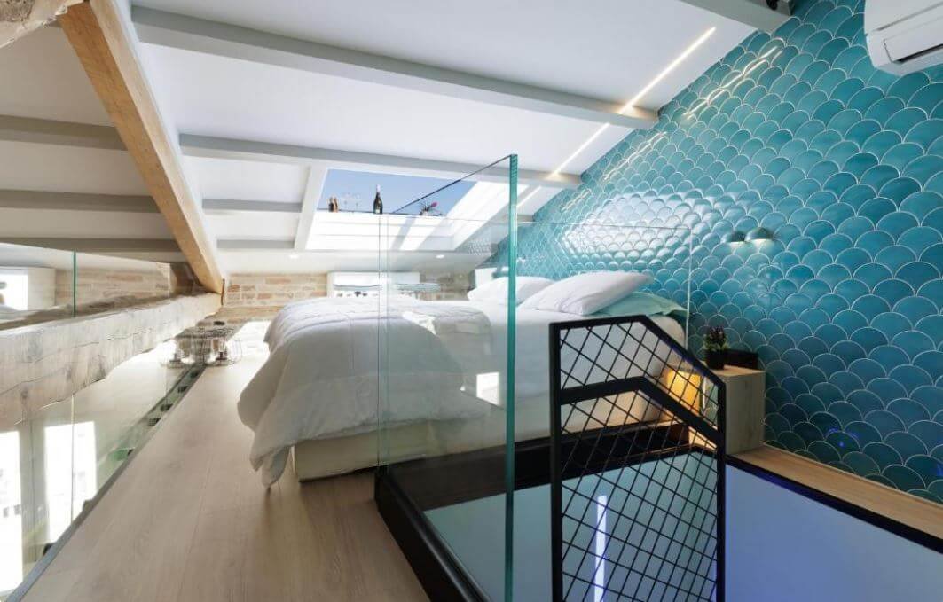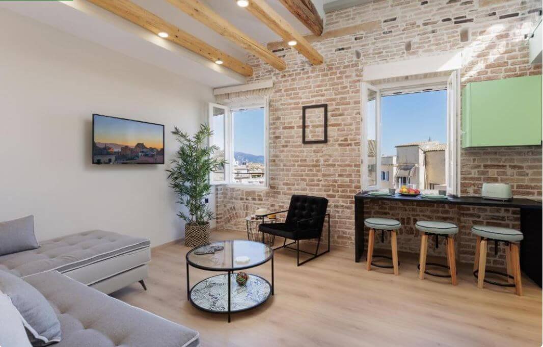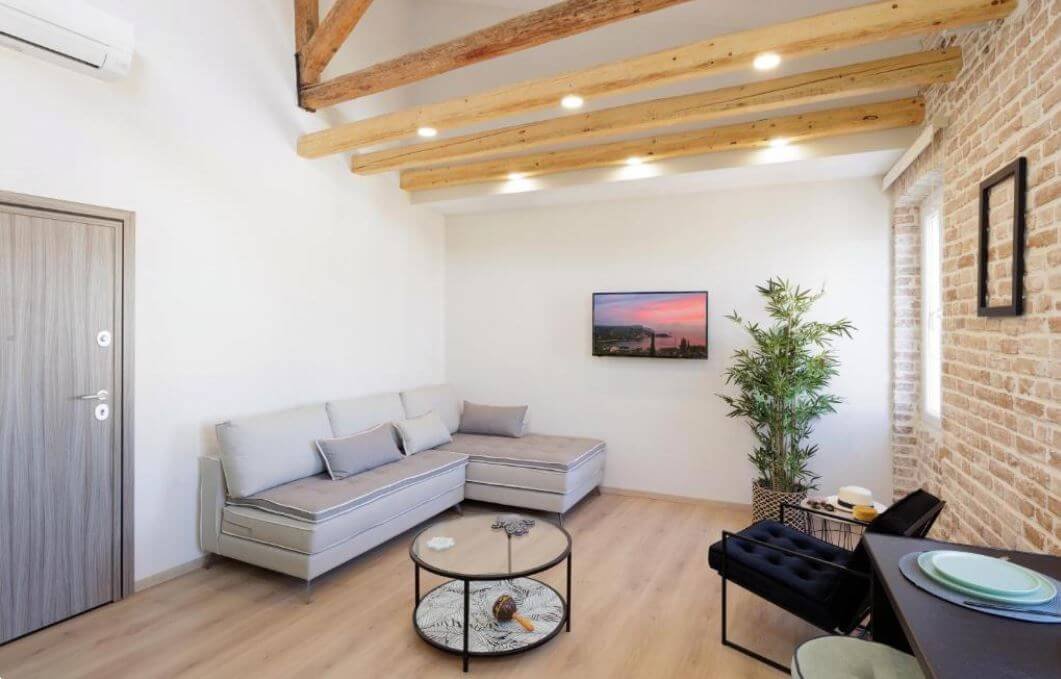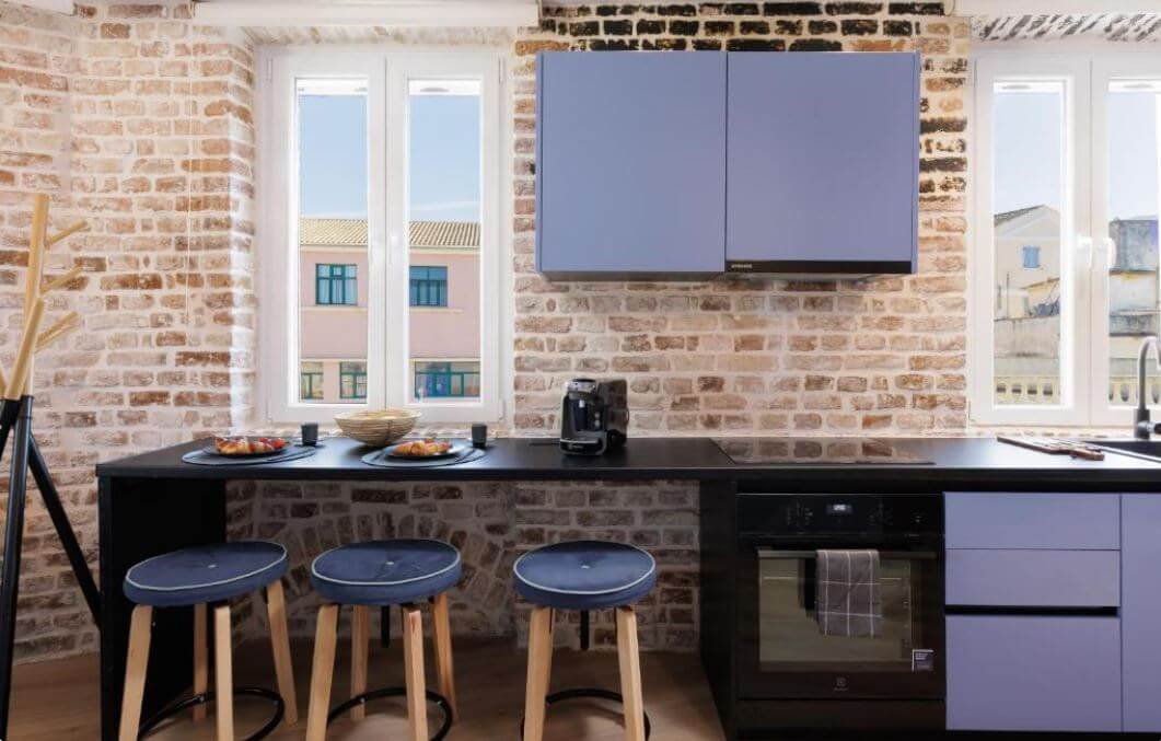 Σε πενταώροφο κτίριο που βρίσκεται στη παλαιά πόλη της Κέρκυρας και συγκεκριμένα στο διαμέρισμα του πέμπτου ορόφου το οποίο έχει εξαιρετική θέα, πραγματοποιήθηκε τμηματική επισκευή στέγης και στοχευμένες εσωτερικές διαρρυθμίσεις, ώστε να επιτευχθεί η εύρυθμη λειτουργία και η μέγιστη δυνατή βελτίωση του χώρου. Συγκεκριμένα η προτεινόμενη λύση δημιούργησε ωφέλιμο χώρο για δύο ανεξάρτητα διαμερίσματα που έχουν χρήση τουριστική.