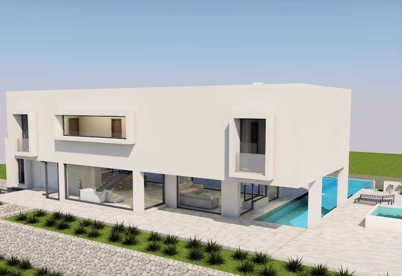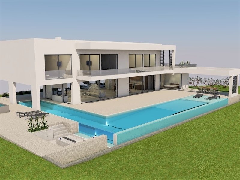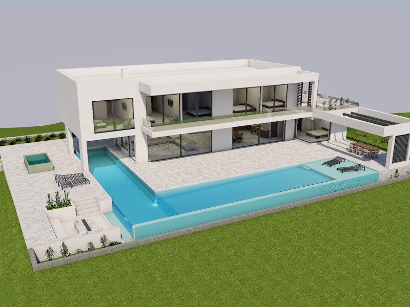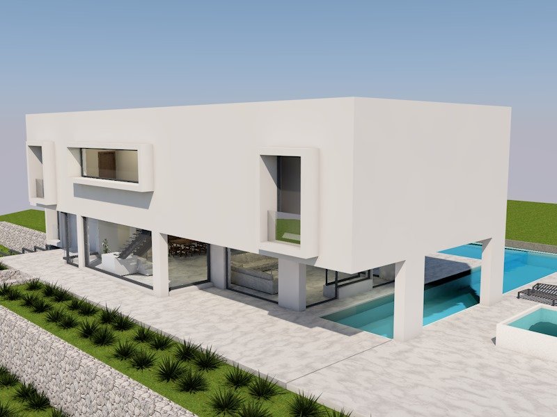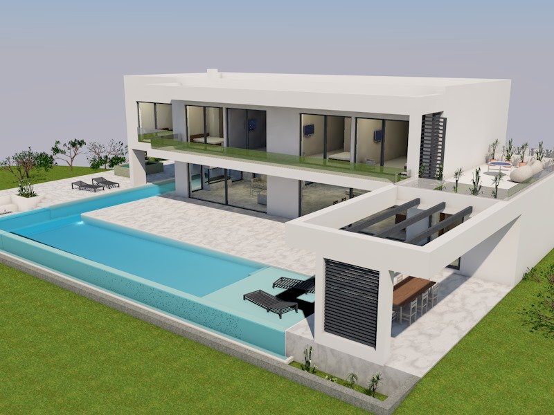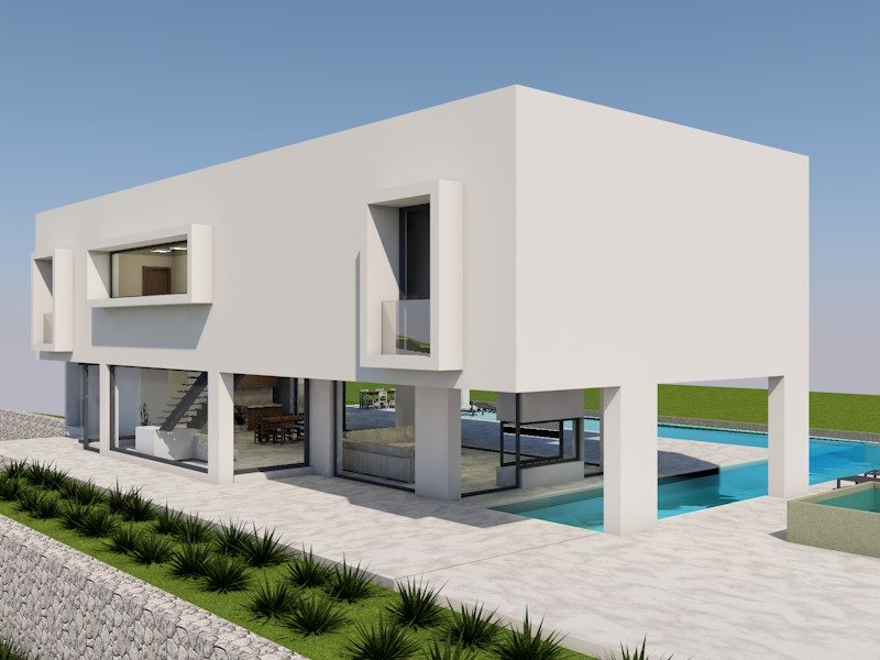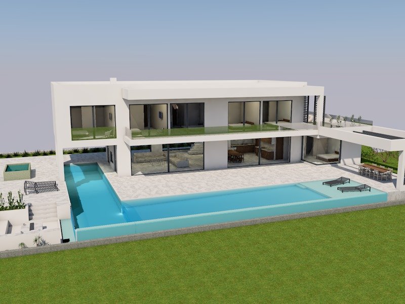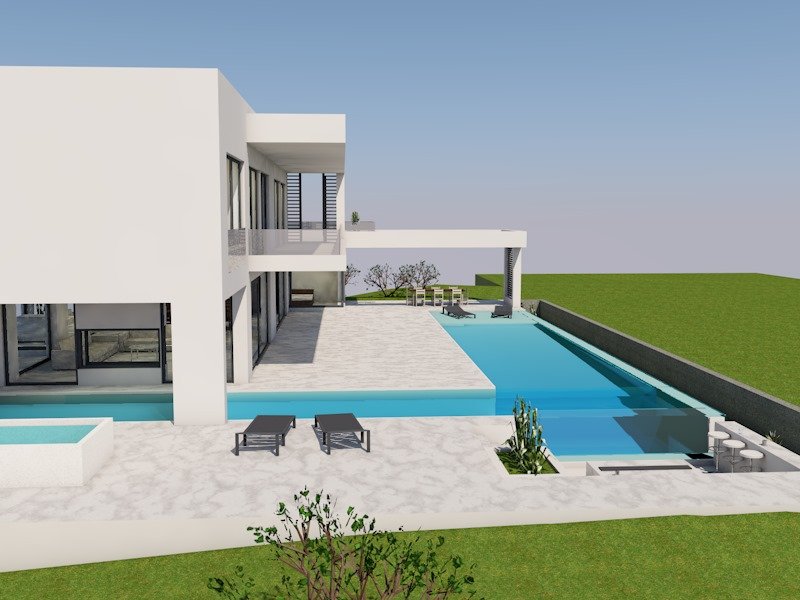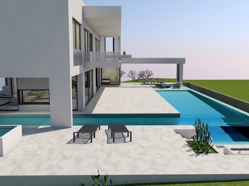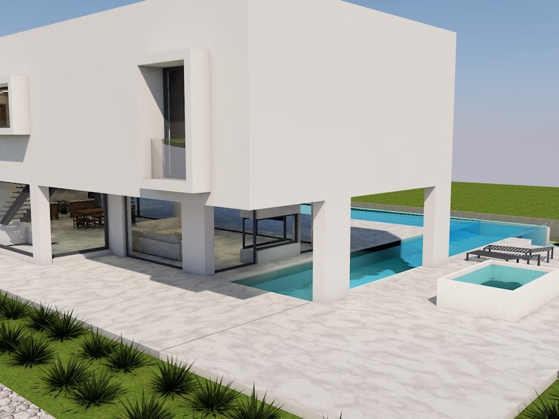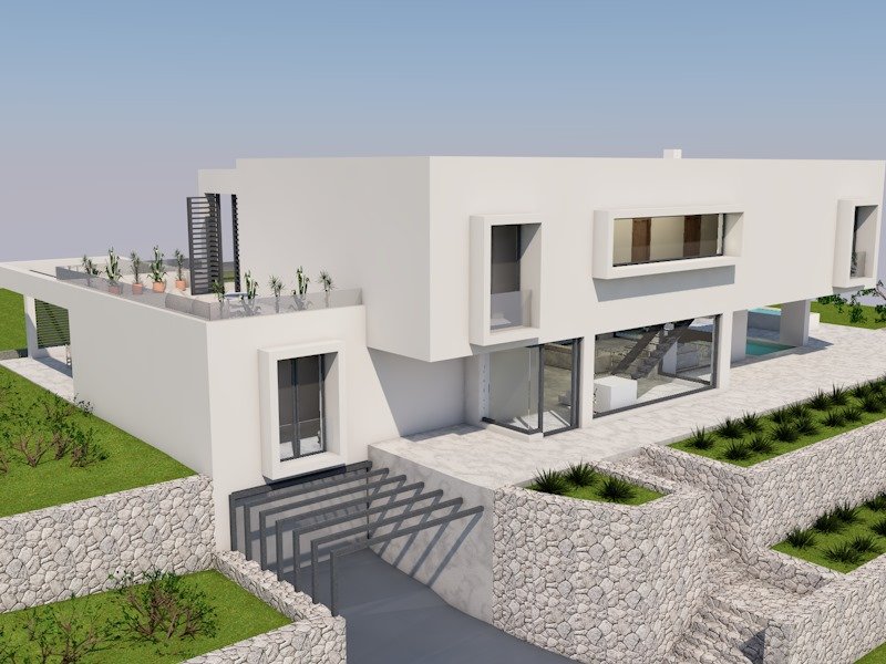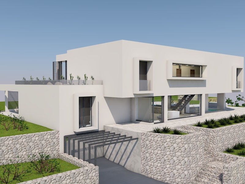 Σε ιδιαίτερα επικλινές οικόπεδο στη περιοχή Στρογγυλί της Κέρκυρας εκπονήθηκε αρχιτεκτονική μελέτη για τη δημιουργία ισόγειας κατοικίας με υπόγειο και κολυμβητική δεξαμενή. Έχει εξαιρετική θέα στη θάλασσα και πλούσια βλάστηση. Έγινε ιδιαίτερη προσπάθεια για την ομοιόμορφη ένταξη του όγκου έτσι ώστε να εκμεταλλεύεται στο έπακρον τους συντελεστές δόμησης με ικανό υπαίθριο χώρο και πισίνα, σε ένα σύνθετο οικόπεδο.