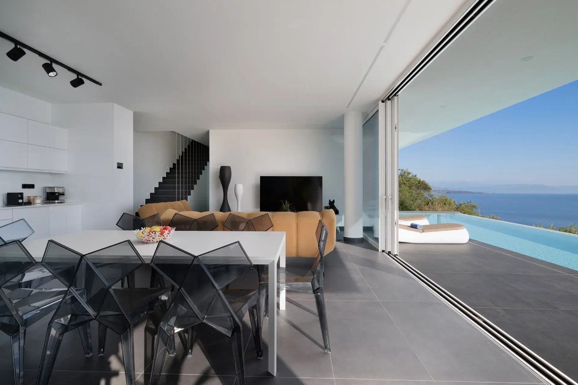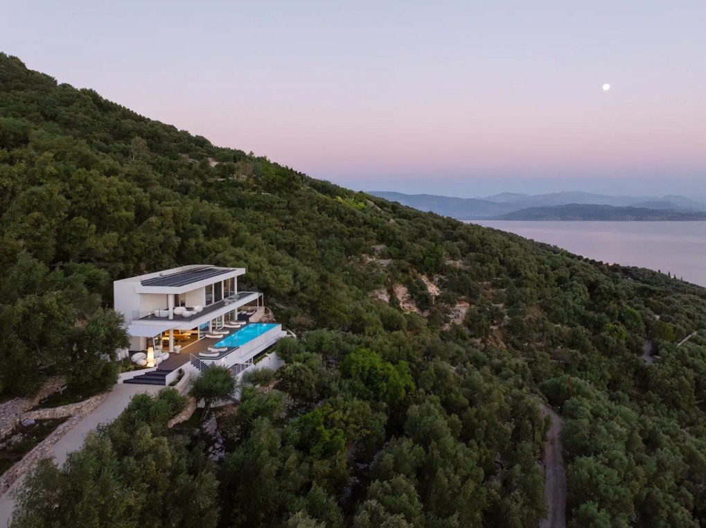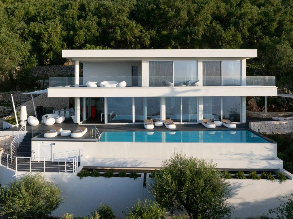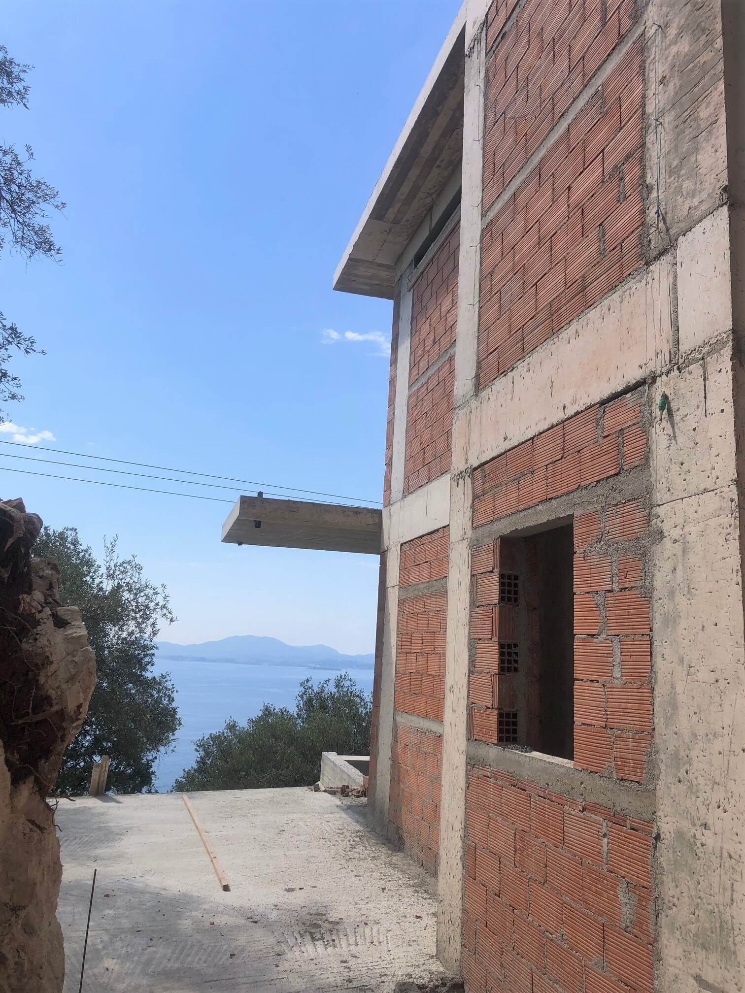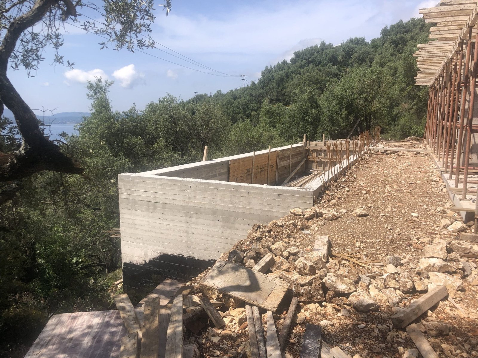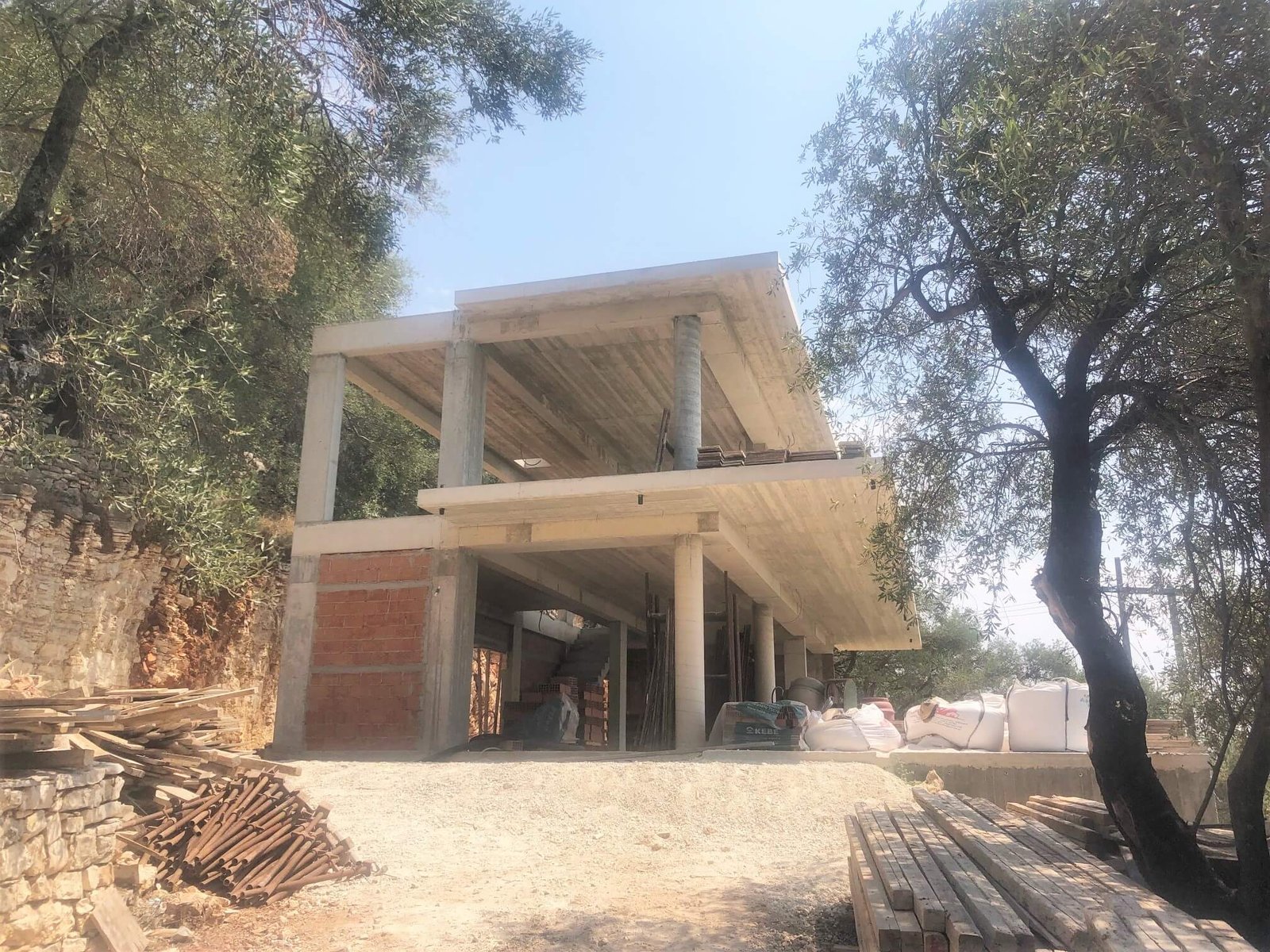 Σε οικόπεδο με πλούσια βλάστηση στη περιοχή Νησάκι της Κέρκυρας κατασκευάστηκε διώροφη κατοικία με πισίνα. Το σύνθετο κλιμακωτό έδαφός του είχε αρκετές κατασκευαστικές προκλήσεις όμως με μεθοδικότητα και σύστημα υλοποιήθηκε η μελέτη προσφέροντας στους ιδιοκτήτες το αποτέλεσμα που επιθυμούσαν. Κεντρικό ρόλο για τη χωροθέτηση του κτιρίου αποτέλεσε η εξαιρετική θέα προς τη θάλασσα και το φυσικό του περιβάλλον, με τον ελαιώνα να εκτείνεται. Προσφέροντας μια διαρκώς εναλλασσόμενη εμπειρία, ενώ ταυτόχρονα εξυπηρετείται η ιδιωτικότητά του.