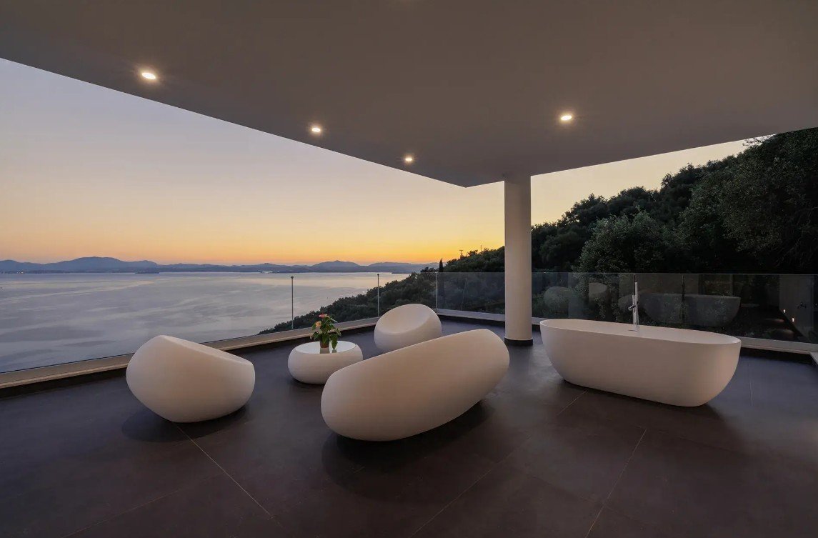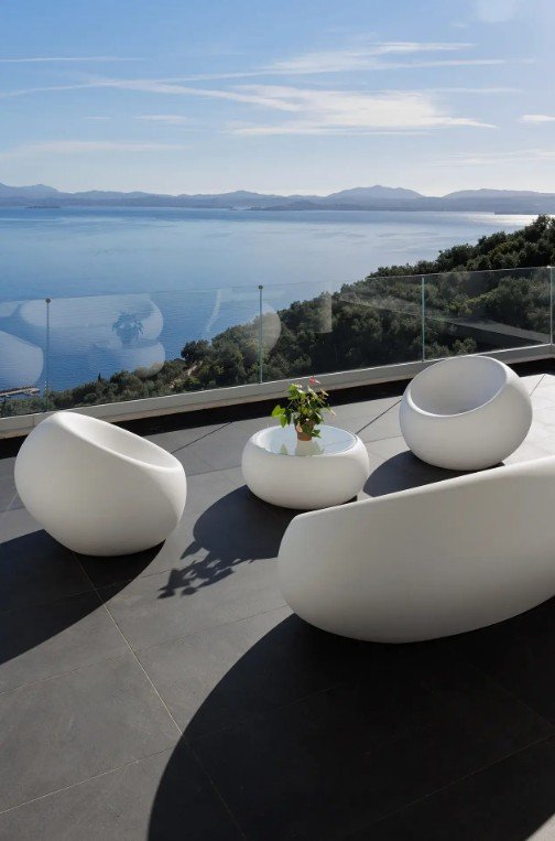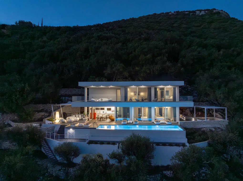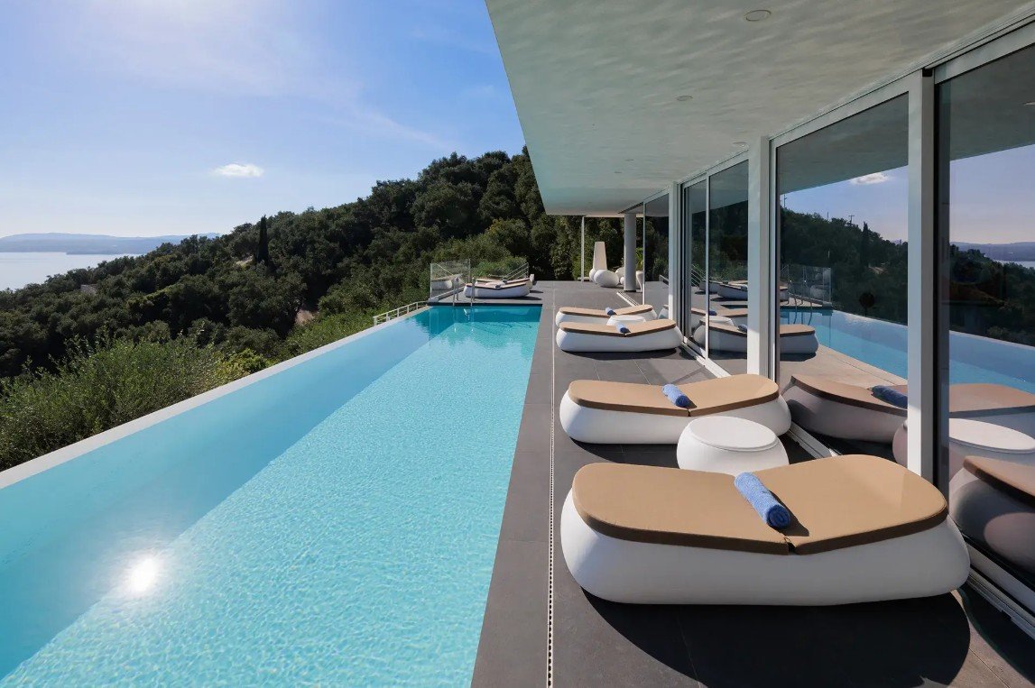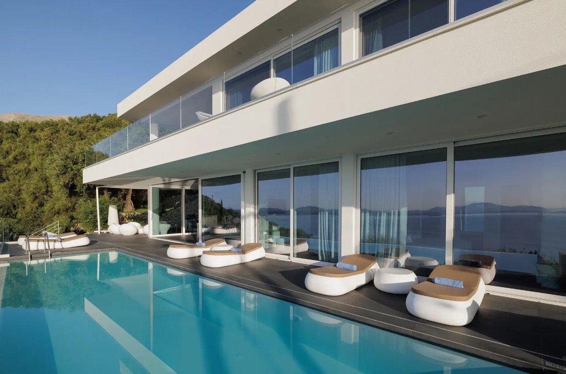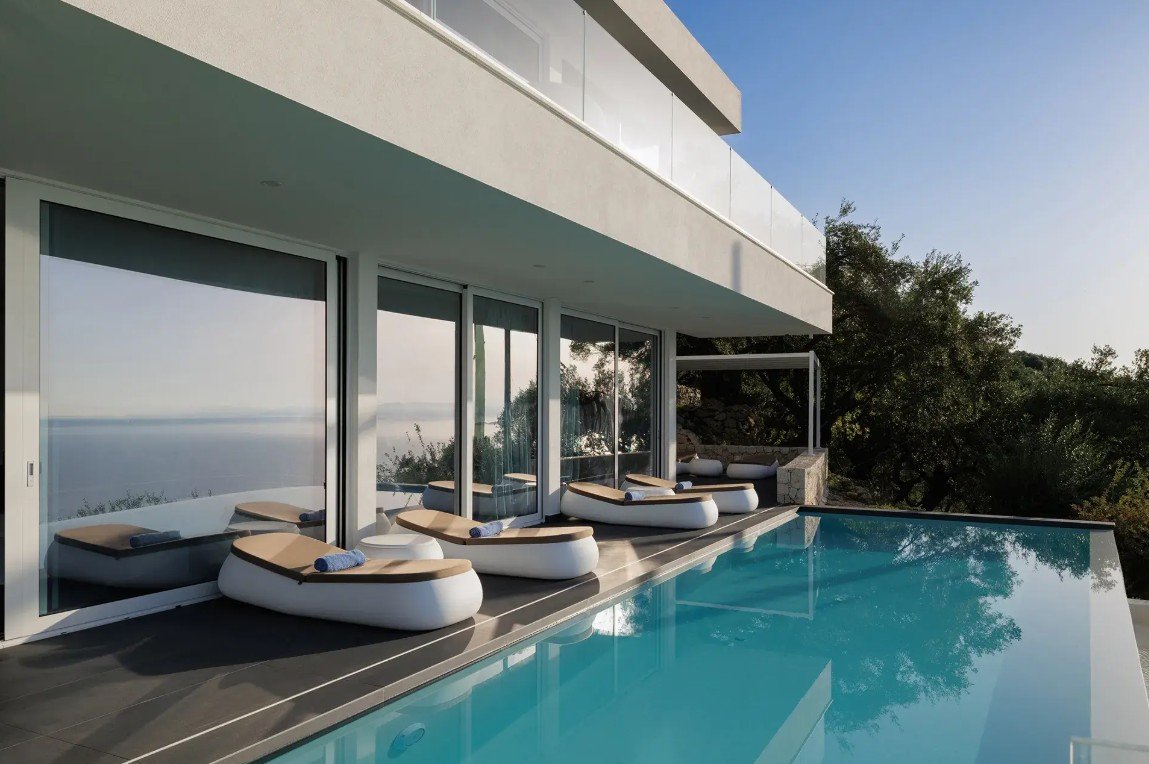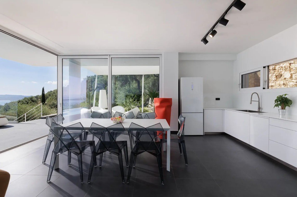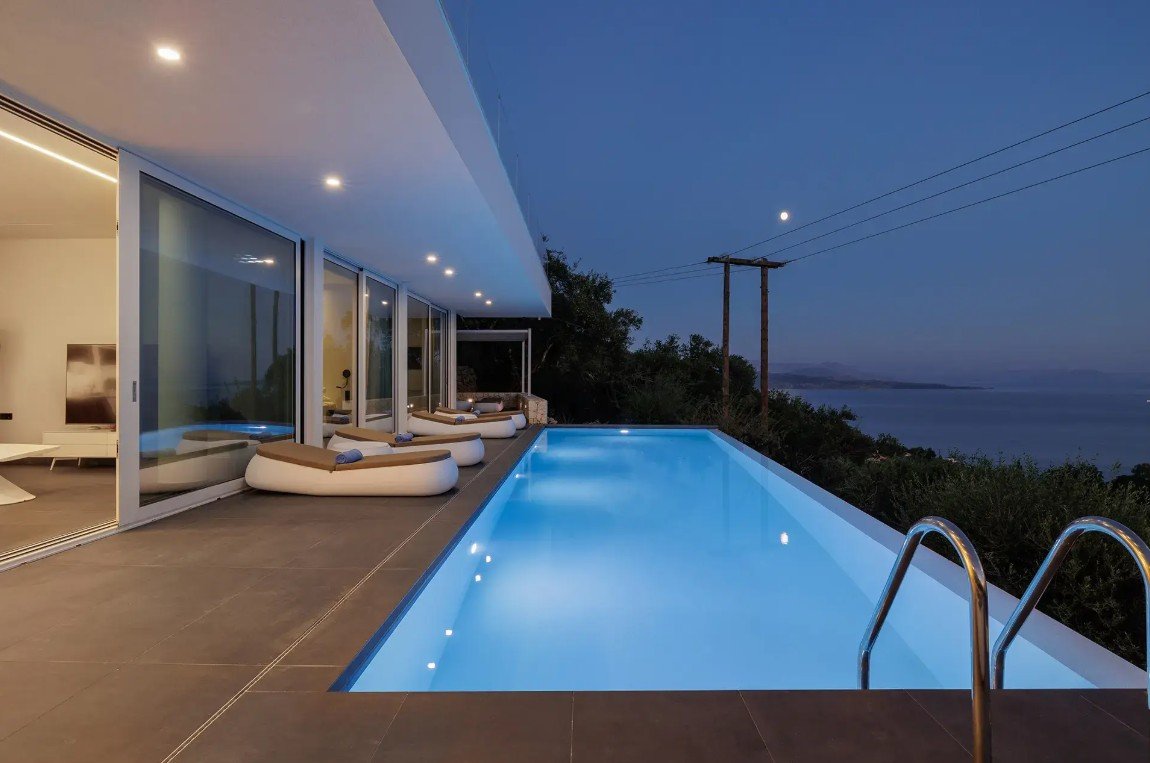 Σε οικόπεδο με πλούσια βλάστηση στη περιοχή Νησάκι της Κέρκυρας κατασκευάστηκε διώροφη κατοικία με πισίνα. Το σύνθετο κλιμακωτό έδαφός του είχε αρκετές κατασκευαστικές προκλήσεις όμως με μεθοδικότητα και σύστημα υλοποιήθηκε η μελέτη προσφέροντας στους ιδιοκτήτες το αποτέλεσμα που επιθυμούσαν. Κεντρικό ρόλο για τη χωροθέτηση του κτιρίου αποτέλεσε η εξαιρετική θέα προς τη θάλασσα και το φυσικό του περιβάλλον, με τον ελαιώνα να εκτείνεται. Προσφέροντας μια διαρκώς εναλλασσόμενη εμπειρία, ενώ ταυτόχρονα εξυπηρετείται η ιδιωτικότητά του.
