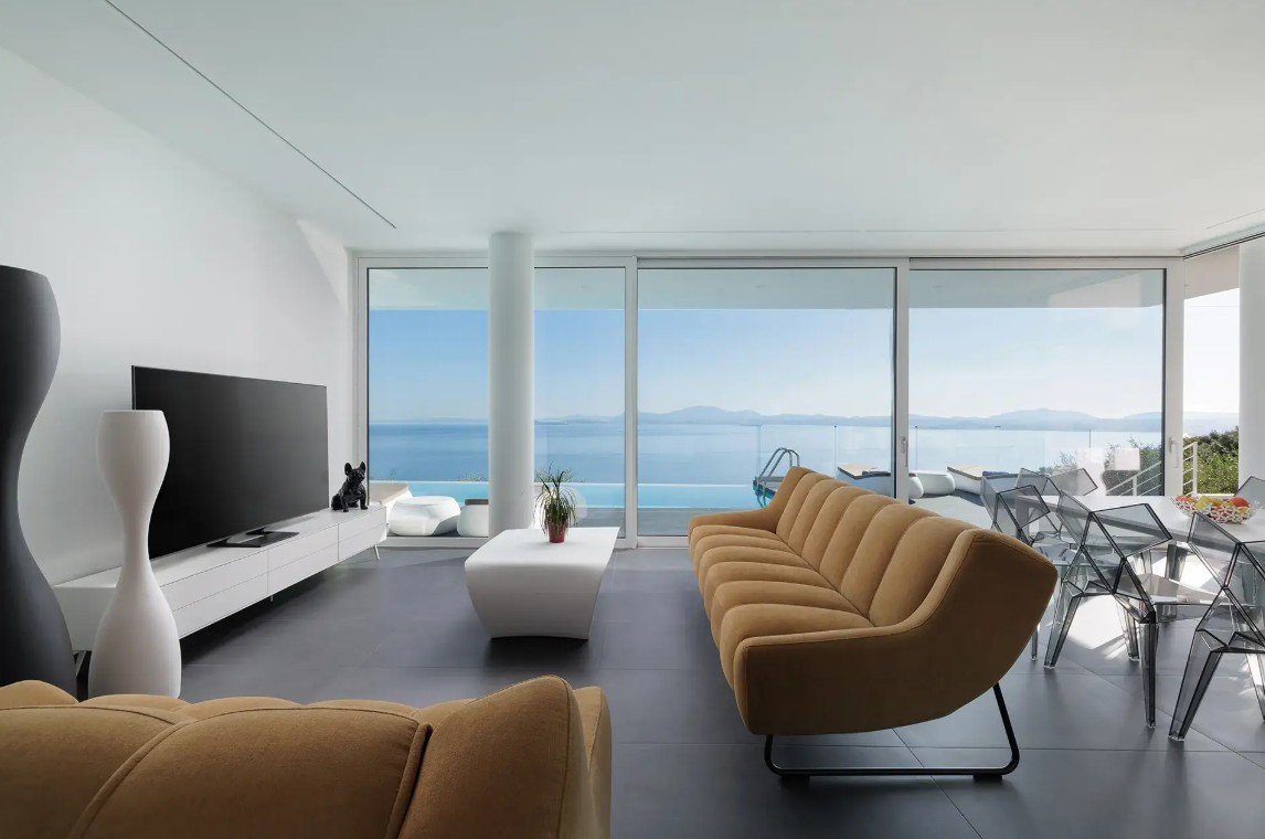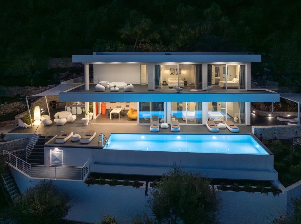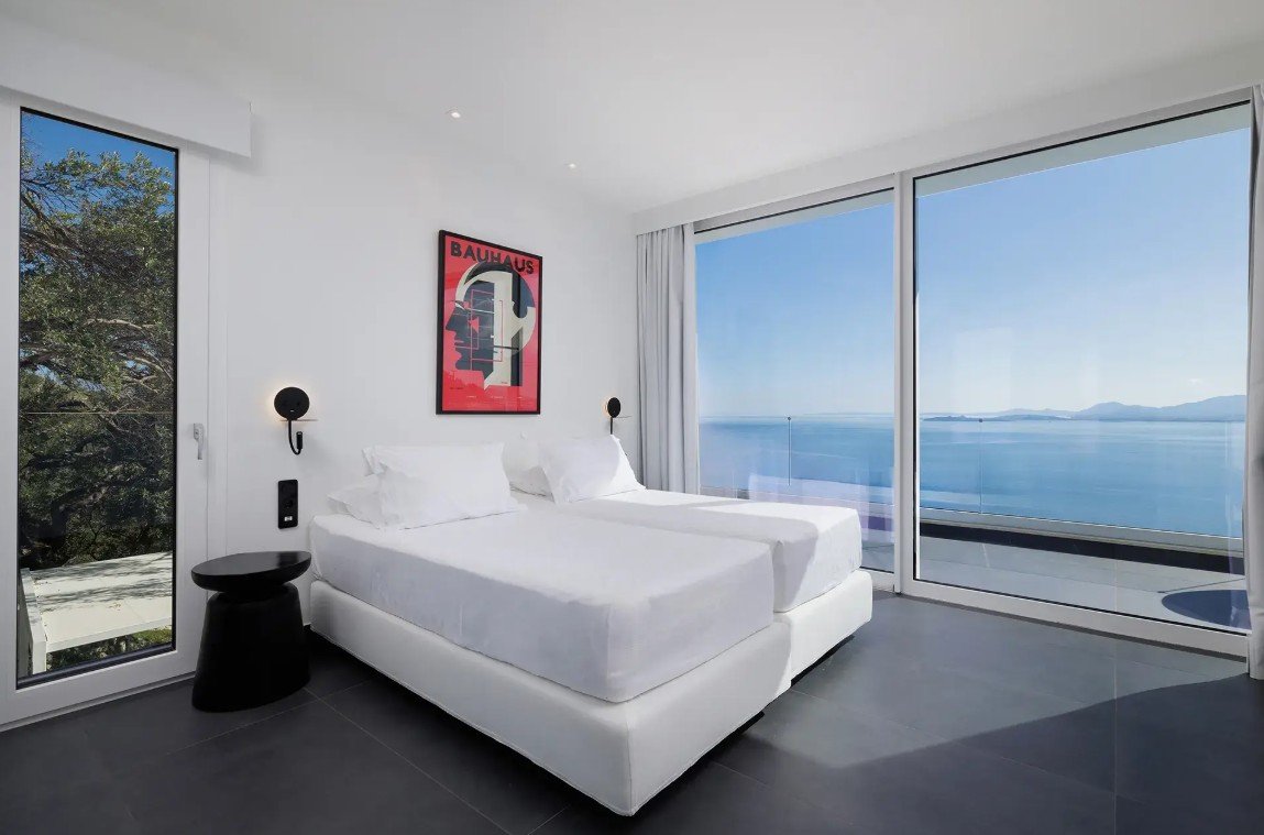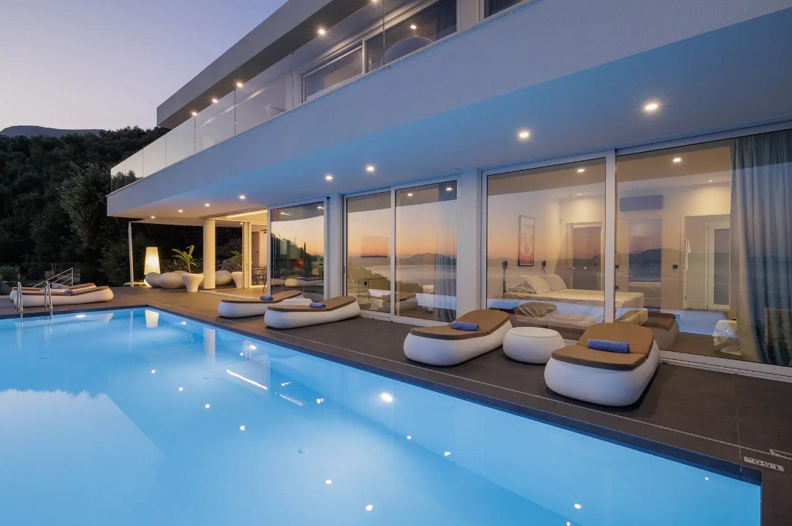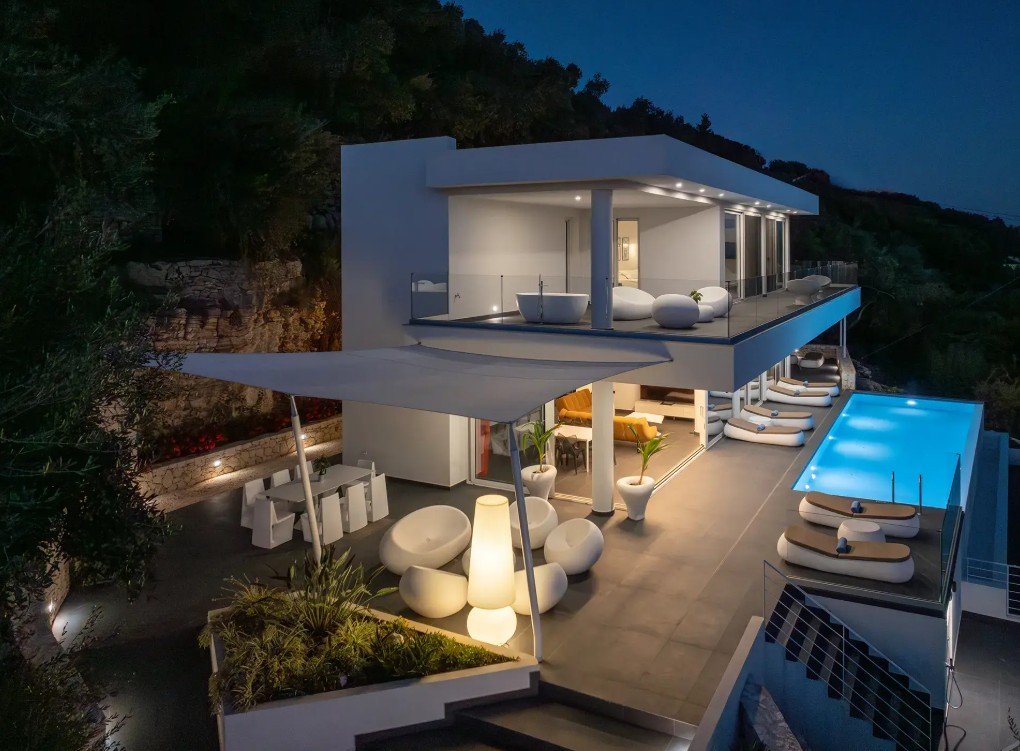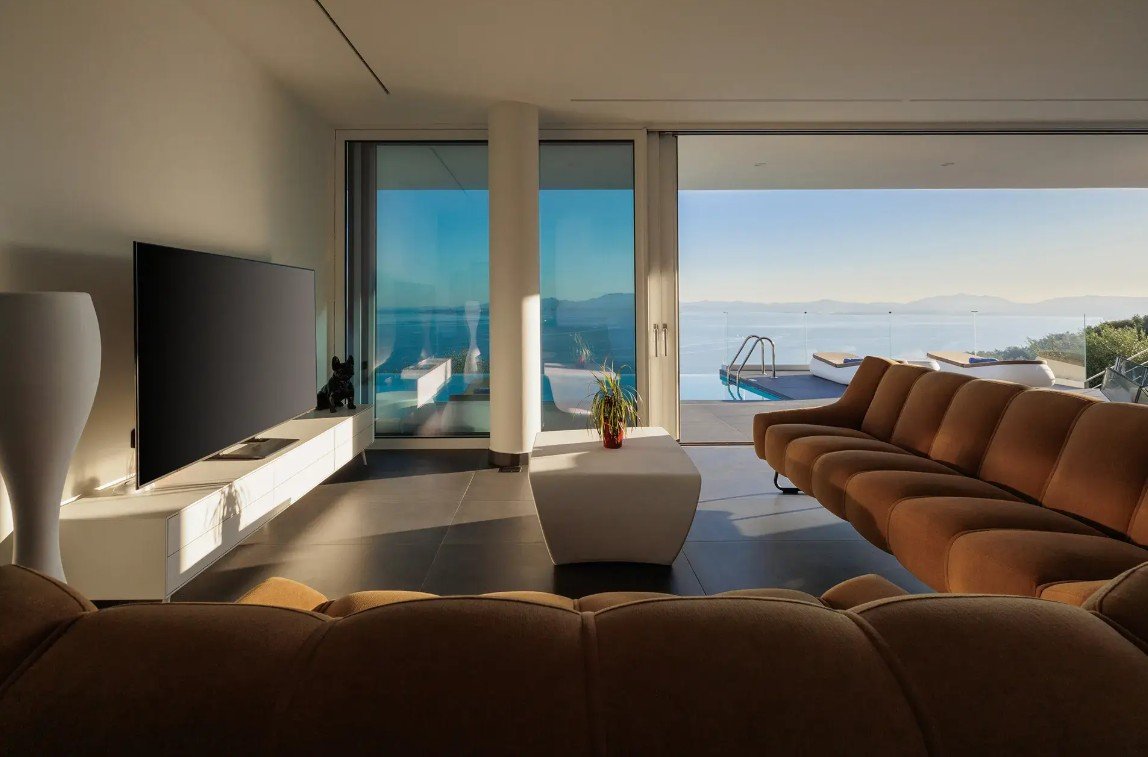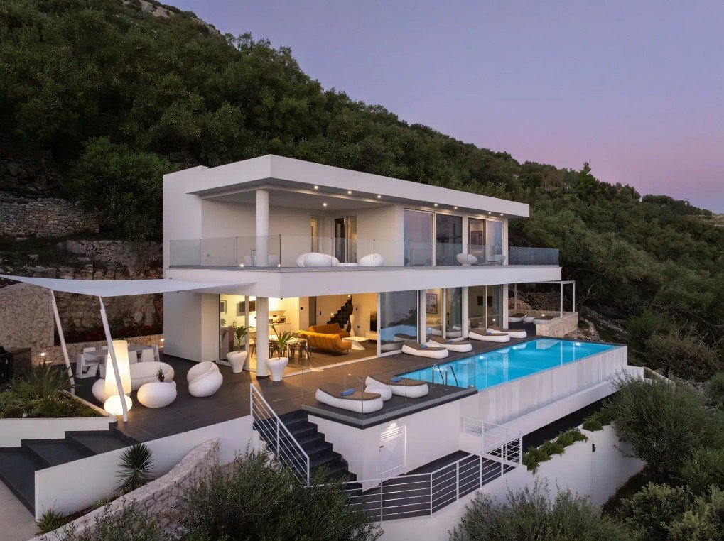 Σε οικόπεδο με πλούσια βλάστηση στη περιοχή Νησάκι της Κέρκυρας κατασκευάστηκε διώροφη κατοικία με πισίνα. Το σύνθετο κλιμακωτό έδαφός του είχε αρκετές κατασκευαστικές προκλήσεις όμως με μεθοδικότητα και σύστημα υλοποιήθηκε η μελέτη προσφέροντας στους ιδιοκτήτες το αποτέλεσμα που επιθυμούσαν. Κεντρικό ρόλο για τη χωροθέτηση του κτιρίου αποτέλεσε η εξαιρετική θέα προς τη θάλασσα και το φυσικό του περιβάλλον, με τον ελαιώνα να εκτείνεται. Προσφέροντας μια διαρκώς εναλλασσόμενη εμπειρία, ενώ ταυτόχρονα εξυπηρετείται η ιδιωτικότητά του.