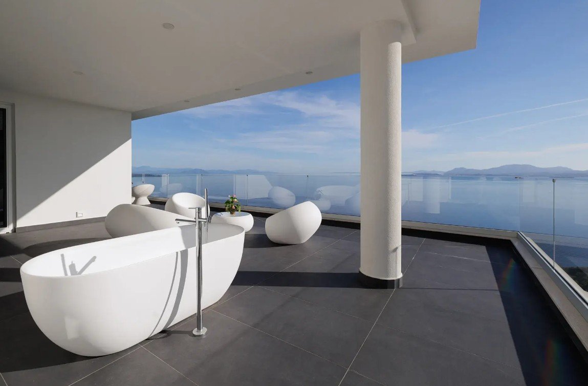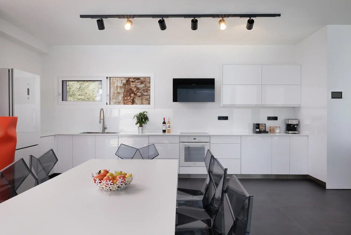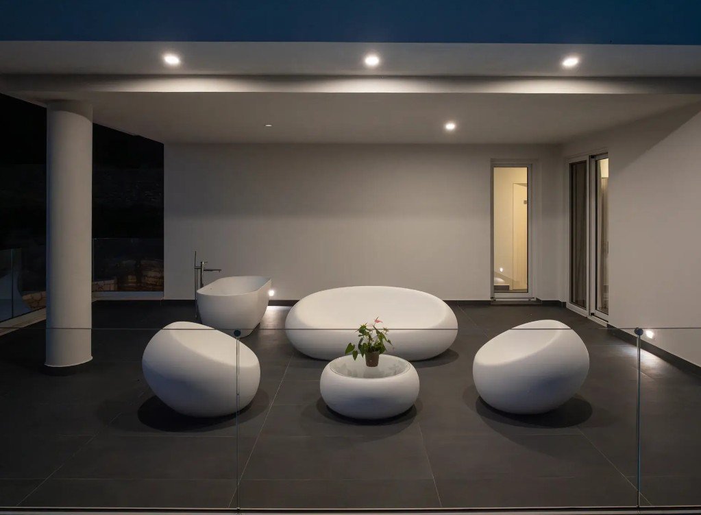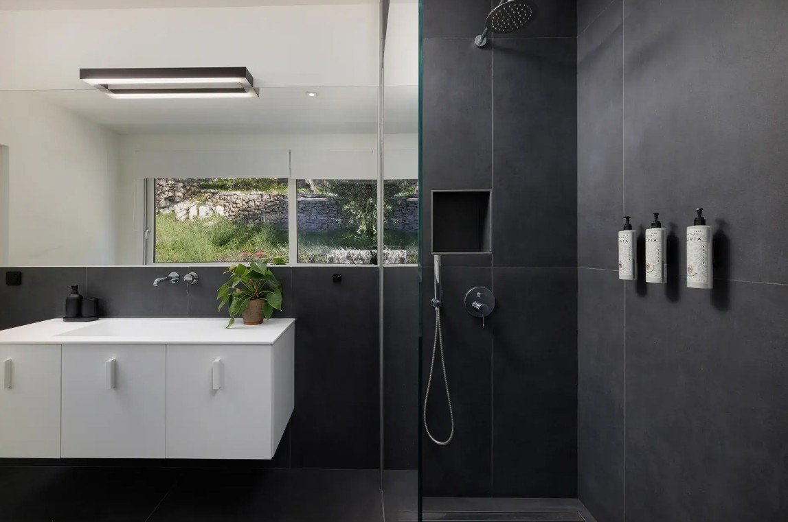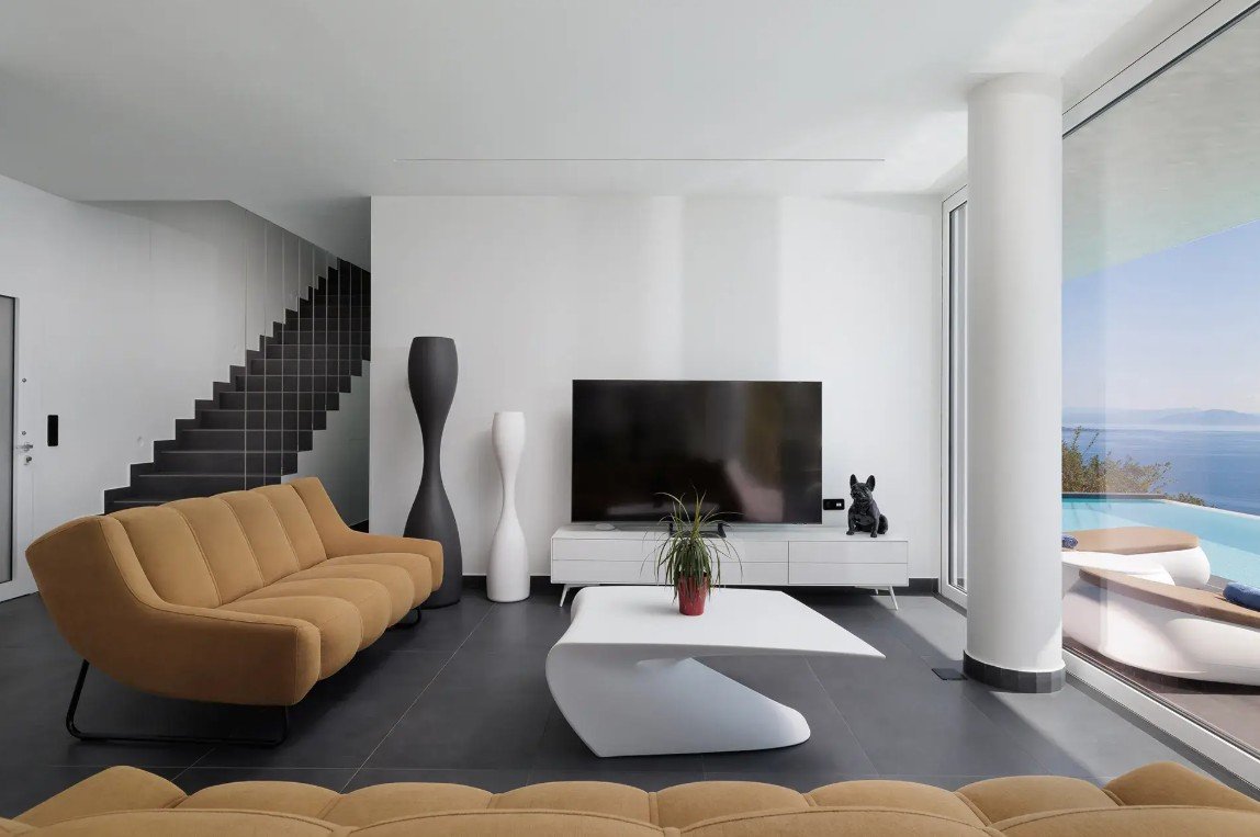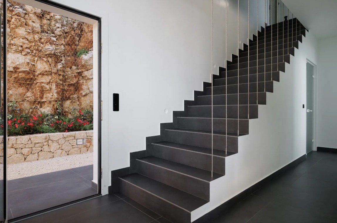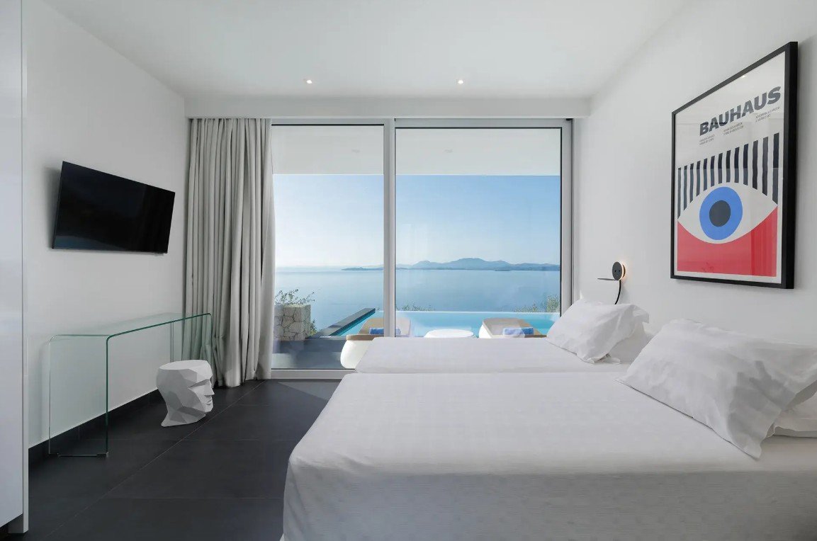 Σε οικόπεδο με πλούσια βλάστηση στη περιοχή Νησάκι της Κέρκυρας κατασκευάστηκε διώροφη κατοικία με πισίνα. Το σύνθετο κλιμακωτό έδαφός του είχε αρκετές κατασκευαστικές προκλήσεις όμως με μεθοδικότητα και σύστημα υλοποιήθηκε η μελέτη προσφέροντας στους ιδιοκτήτες το αποτέλεσμα που επιθυμούσαν. Κεντρικό ρόλο για τη χωροθέτηση του κτιρίου αποτέλεσε η εξαιρετική θέα προς τη θάλασσα και το φυσικό του περιβάλλον, με τον ελαιώνα να εκτείνεται. Προσφέροντας μια διαρκώς εναλλασσόμενη εμπειρία, ενώ ταυτόχρονα εξυπηρετείται η ιδιωτικότητά του.